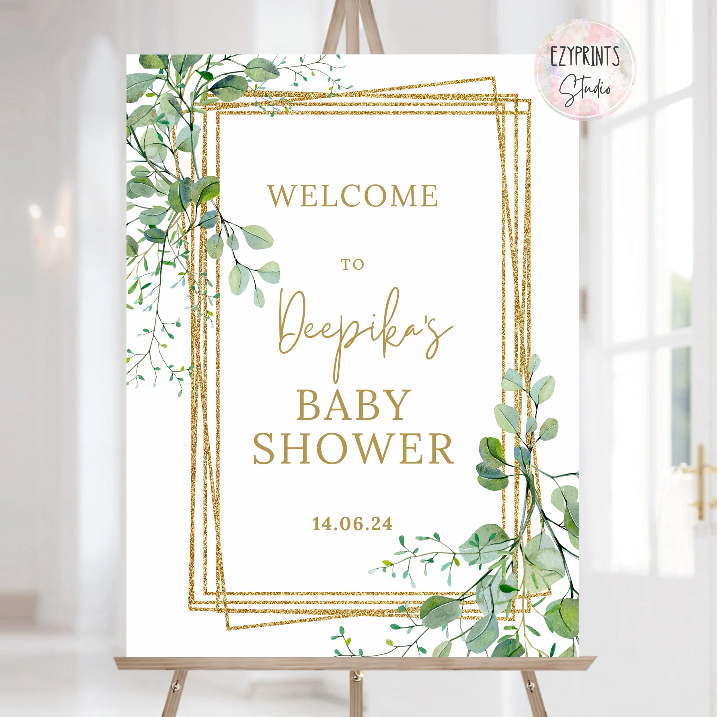 Baby Shower Welcome Board Gold