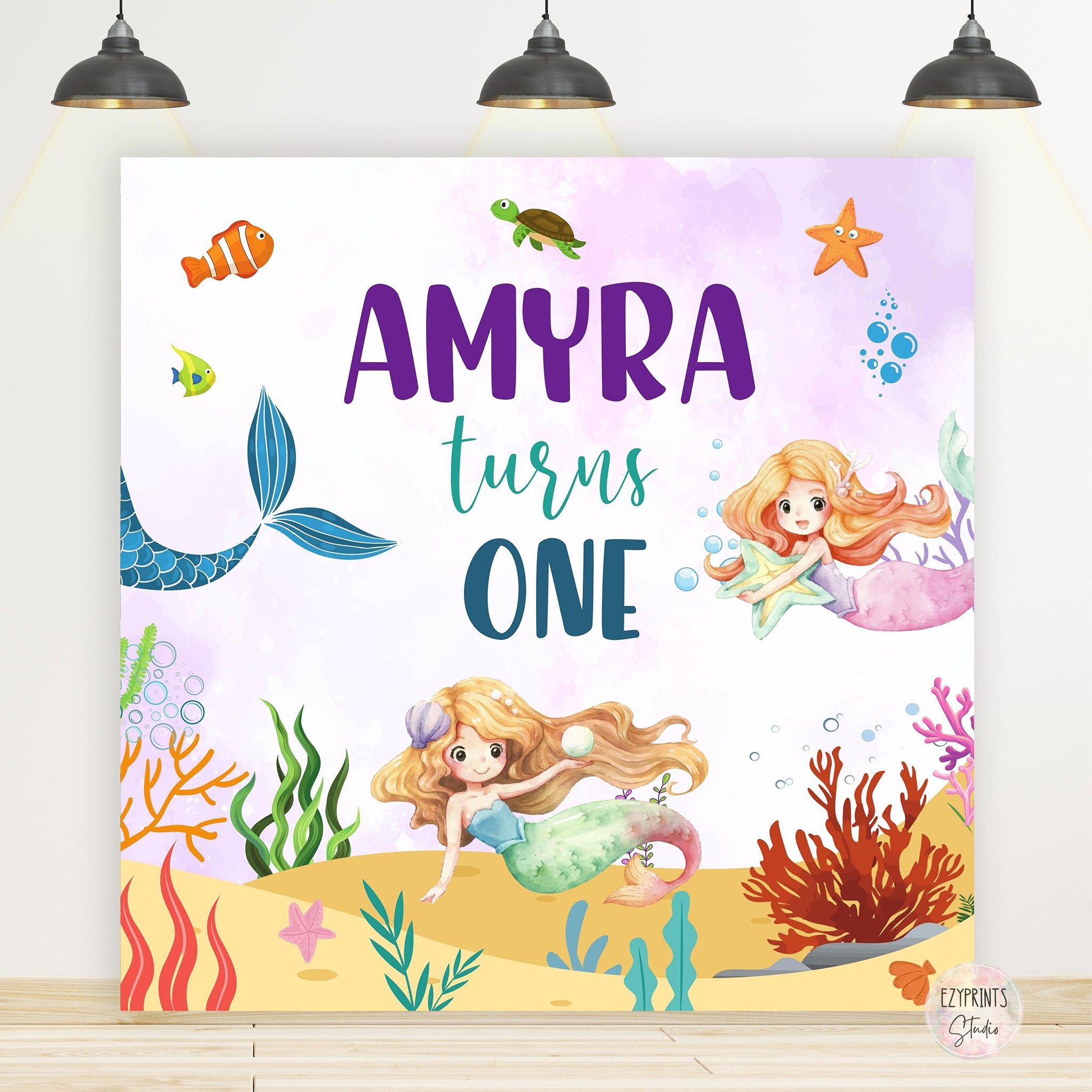Mermaid Purple Theme Birthday Backdrop