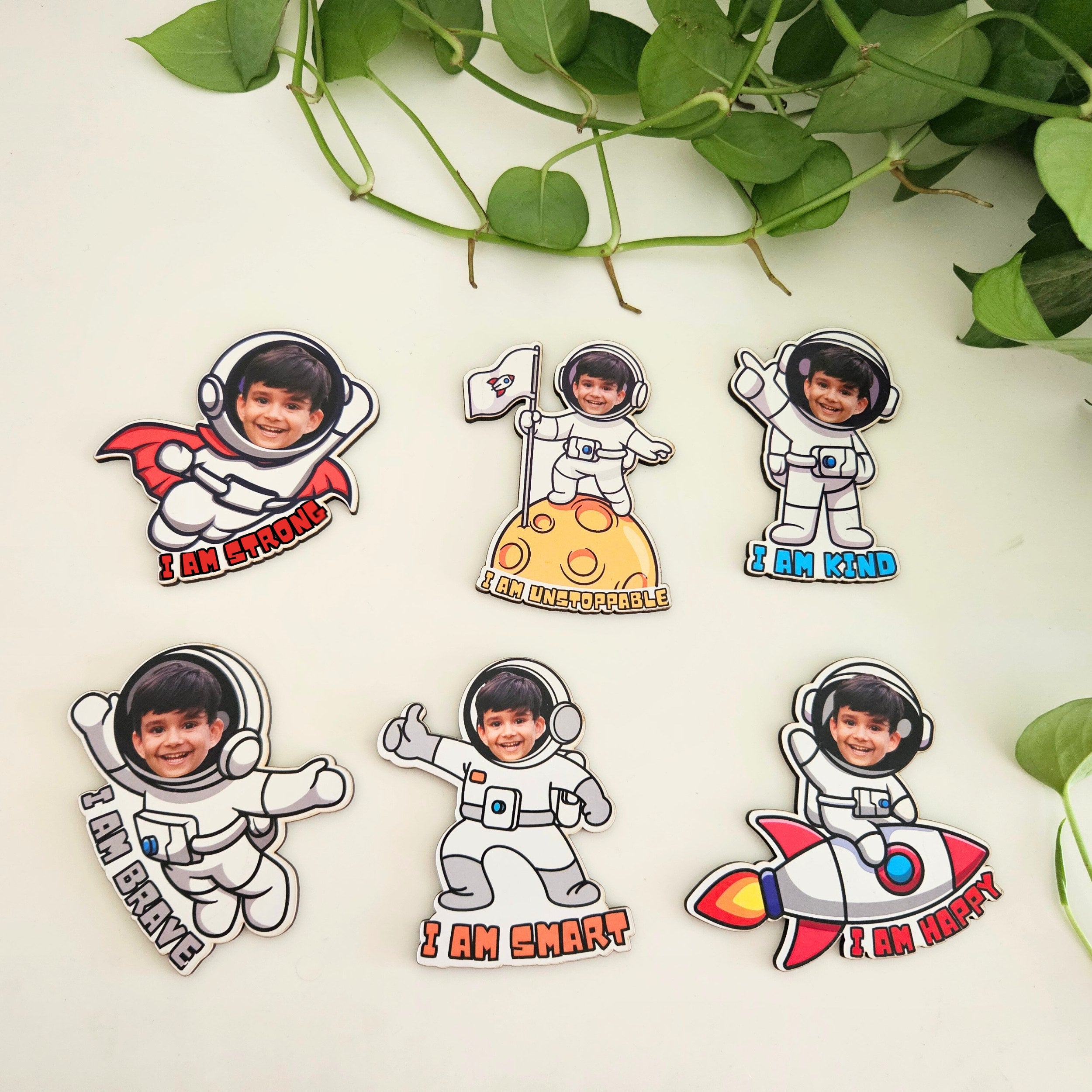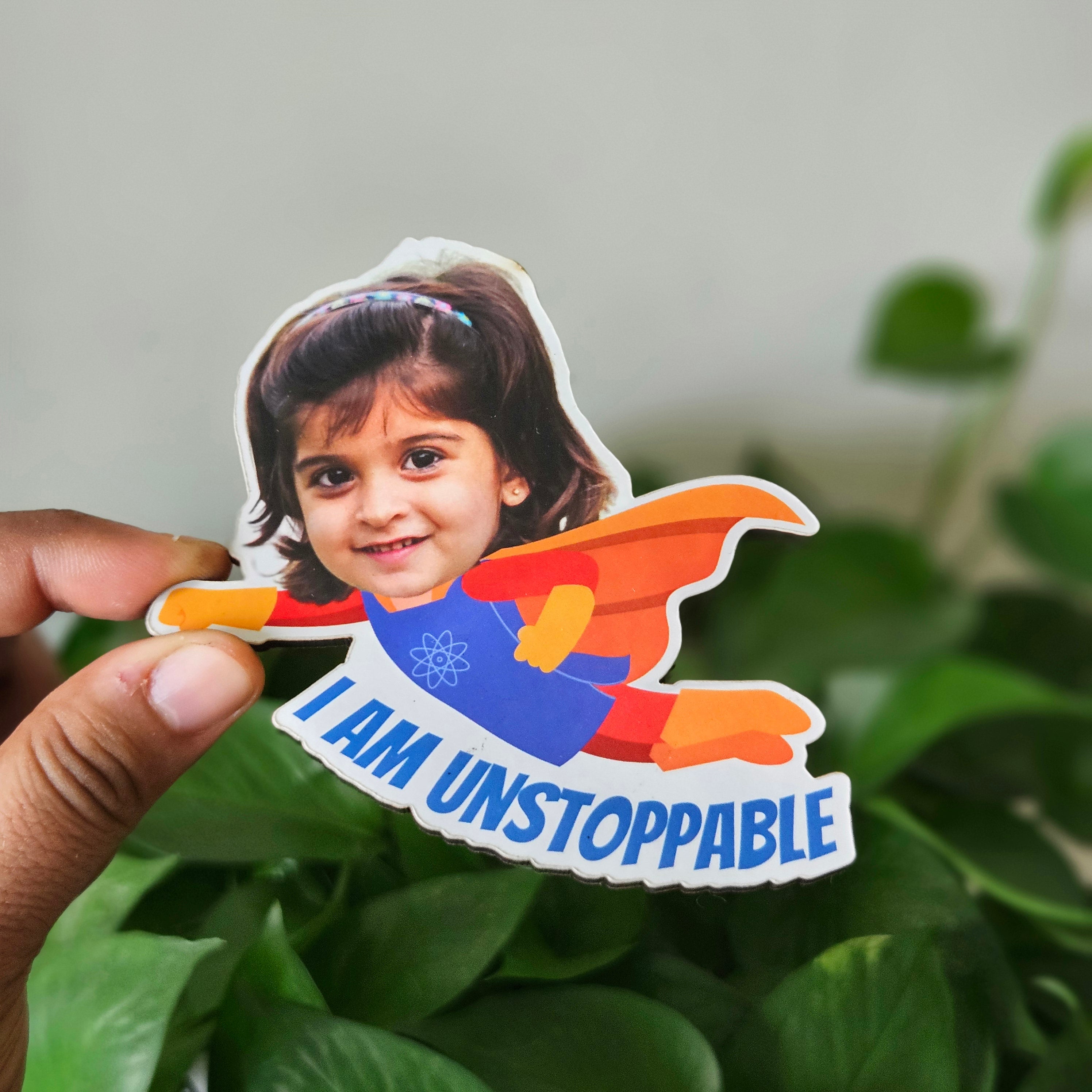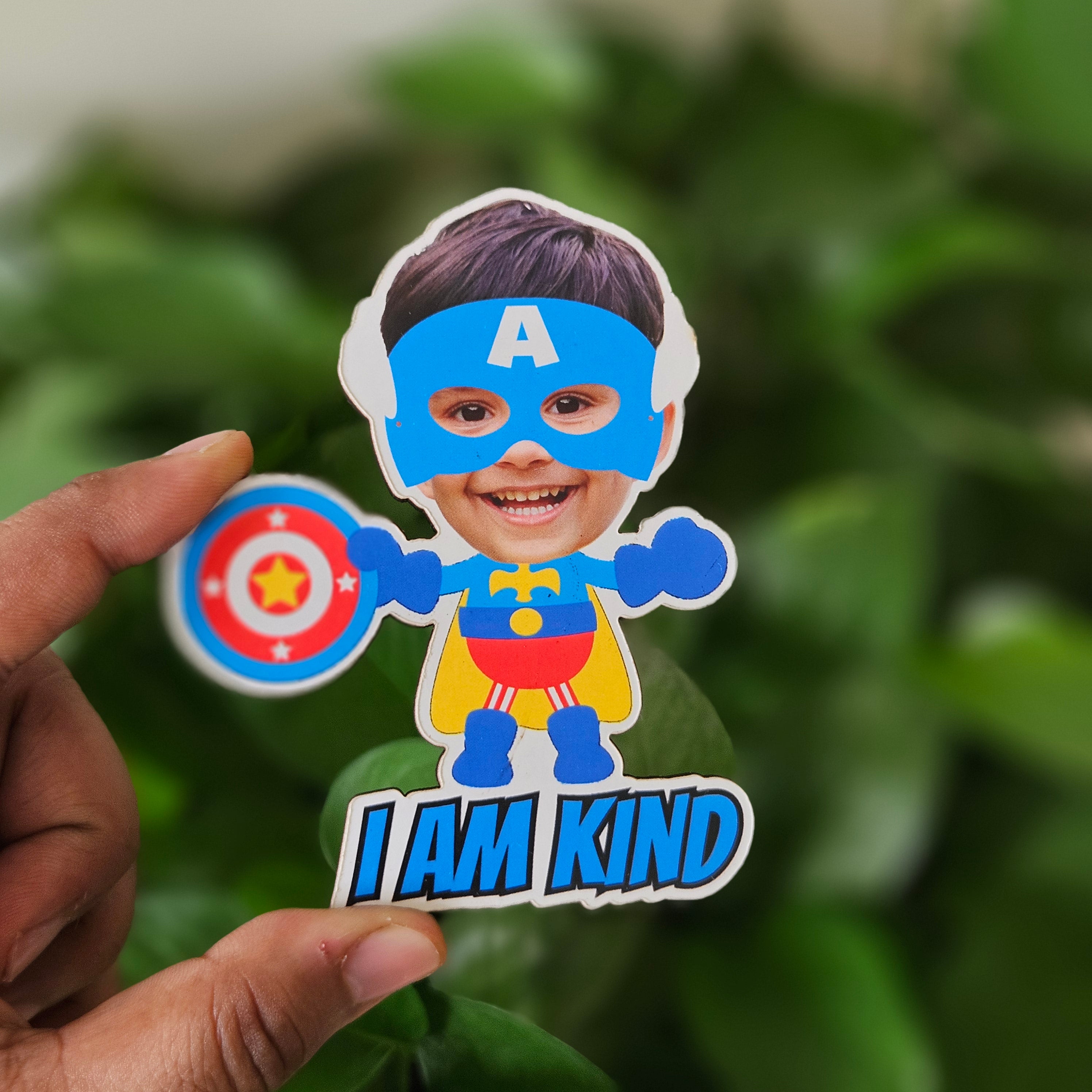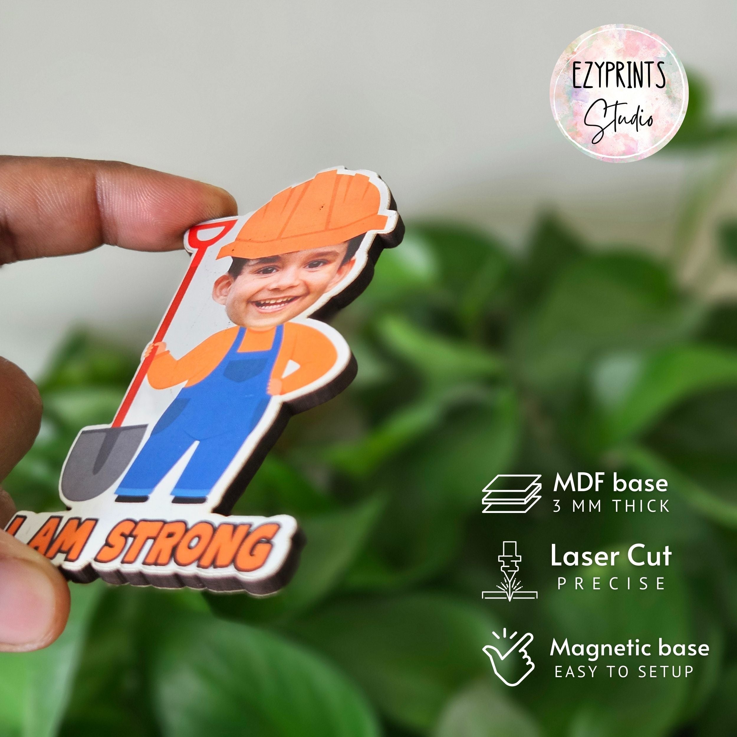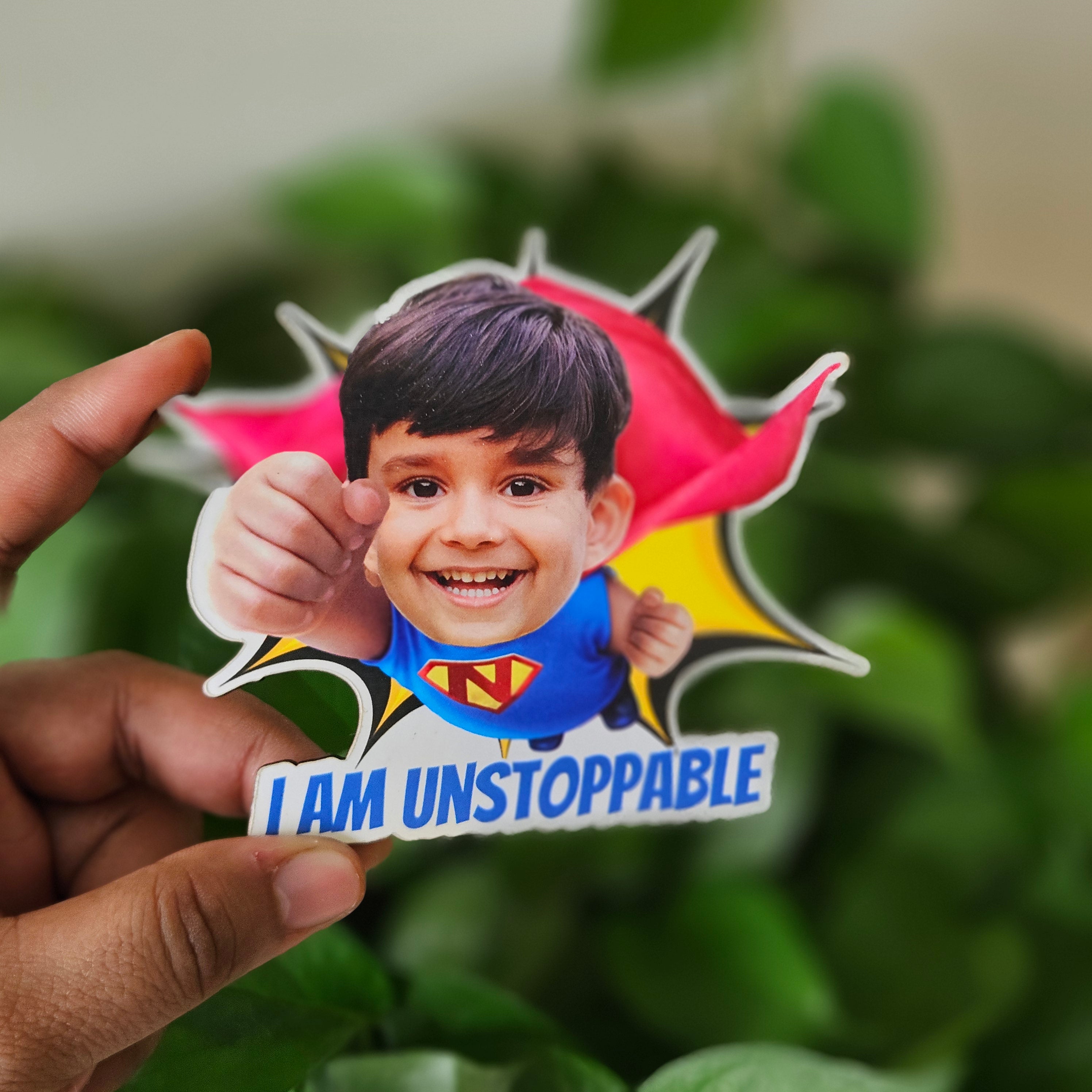 Brighten up your fridge and inspire your little one every day with our Custom Miniature Kids' Fridge Magnets! These adorable, personalized magnets feature your child's face and body in fun themes like superheroes and boss baby, complemented by uplifting daily affirmations to boost their confidence and self-esteem.