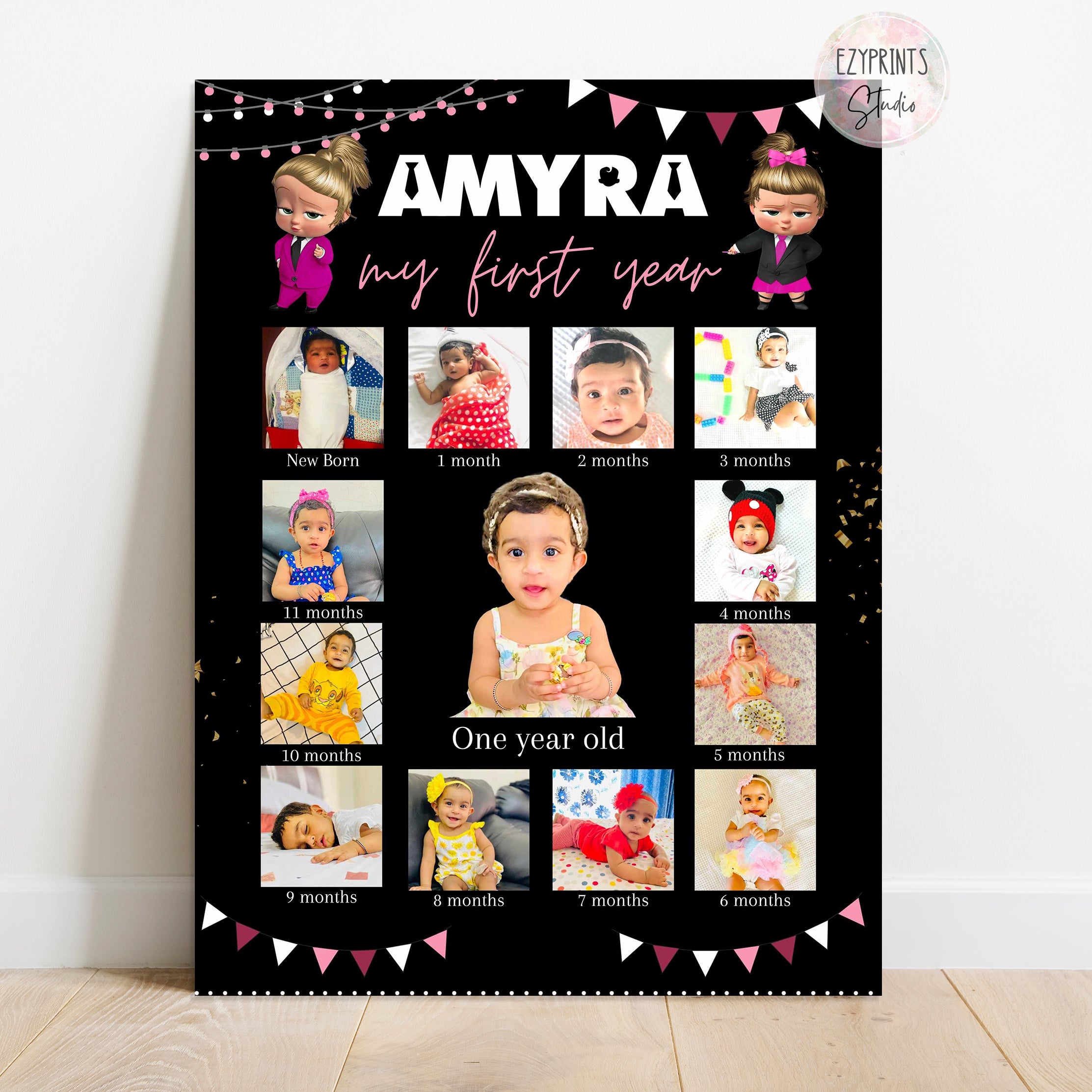 Personalised First Year Photo Collage Board | Boss Baby Pink