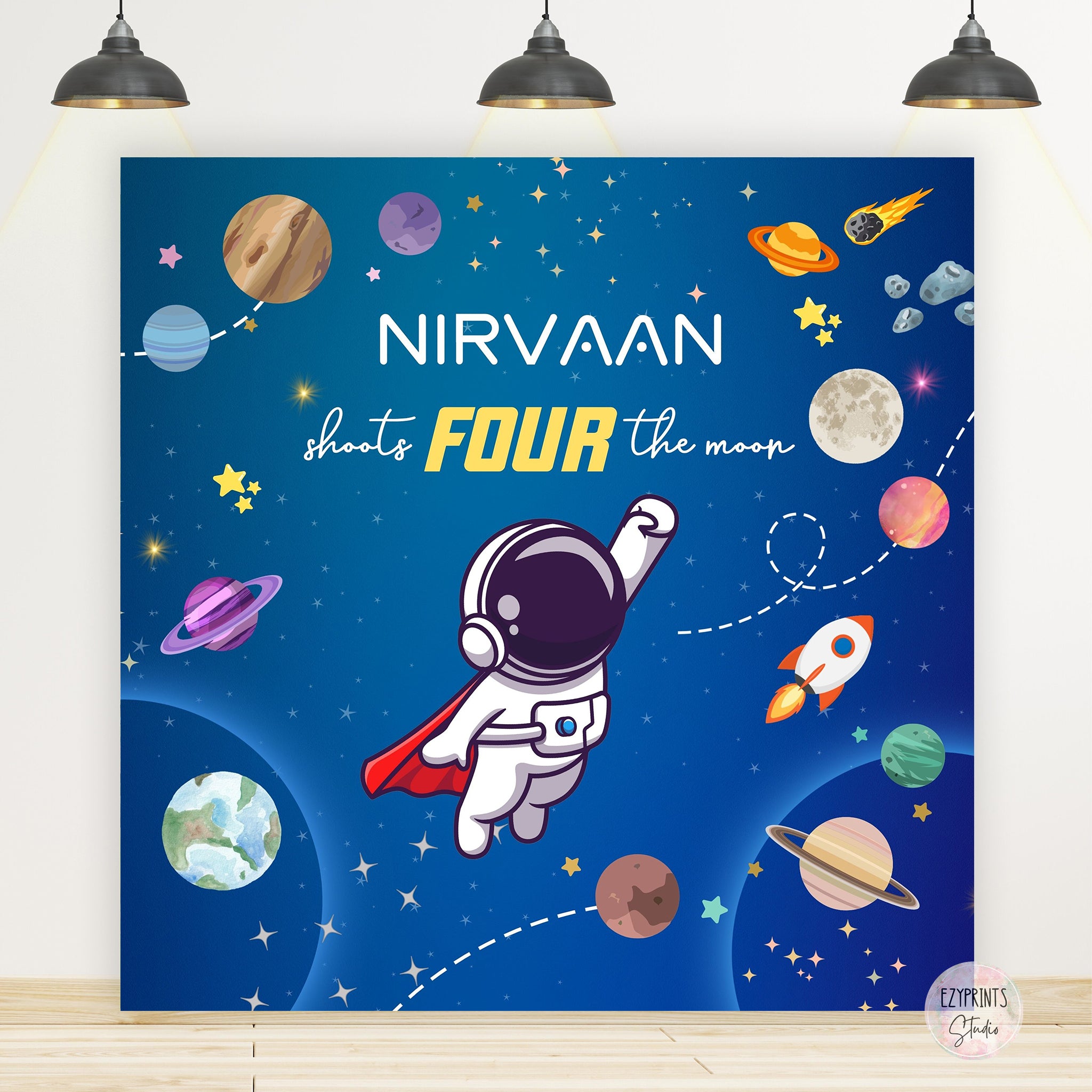 Space theme Birthday Backdrop | Shoot four the moon
