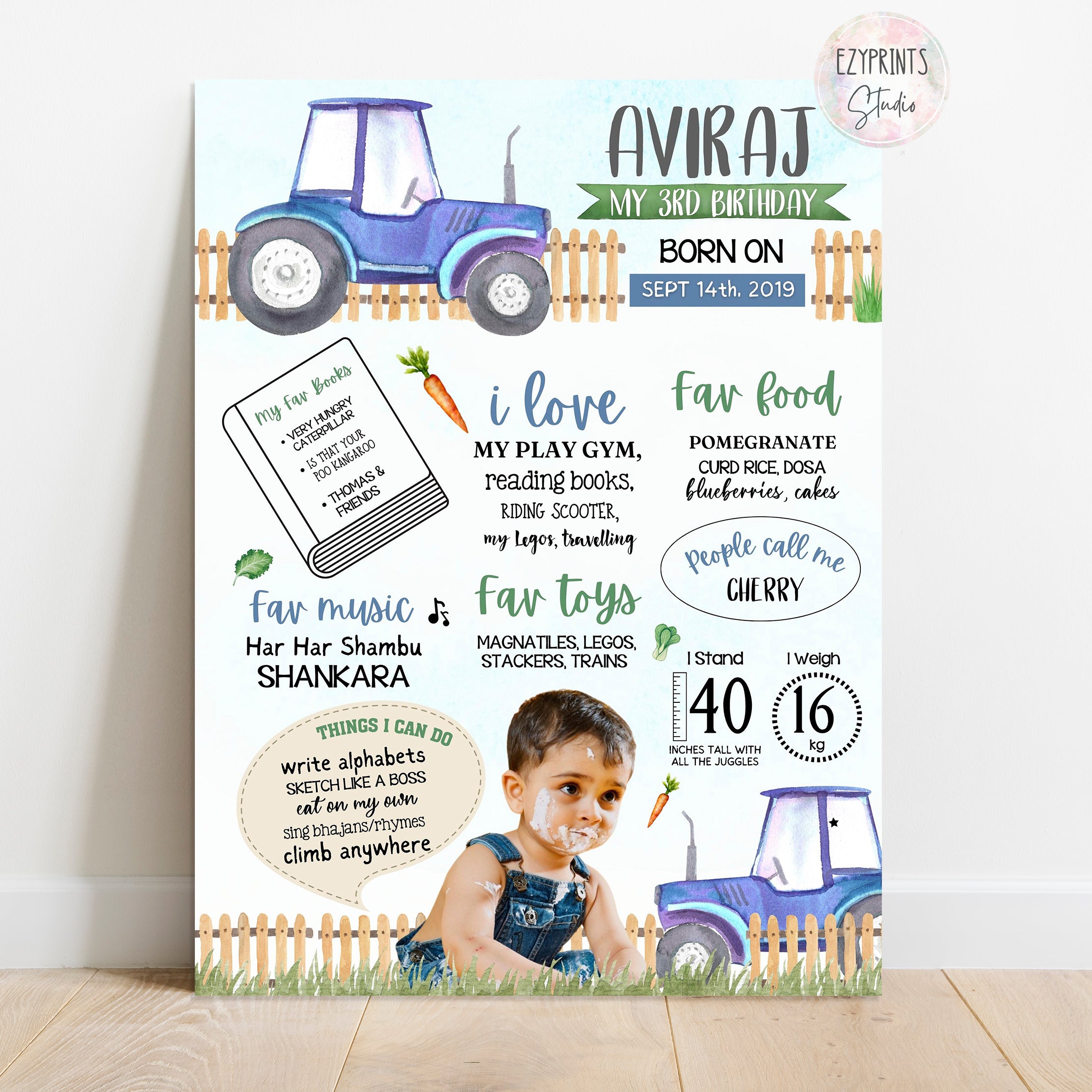 Tractor theme Birthday Chalkboard Poster
