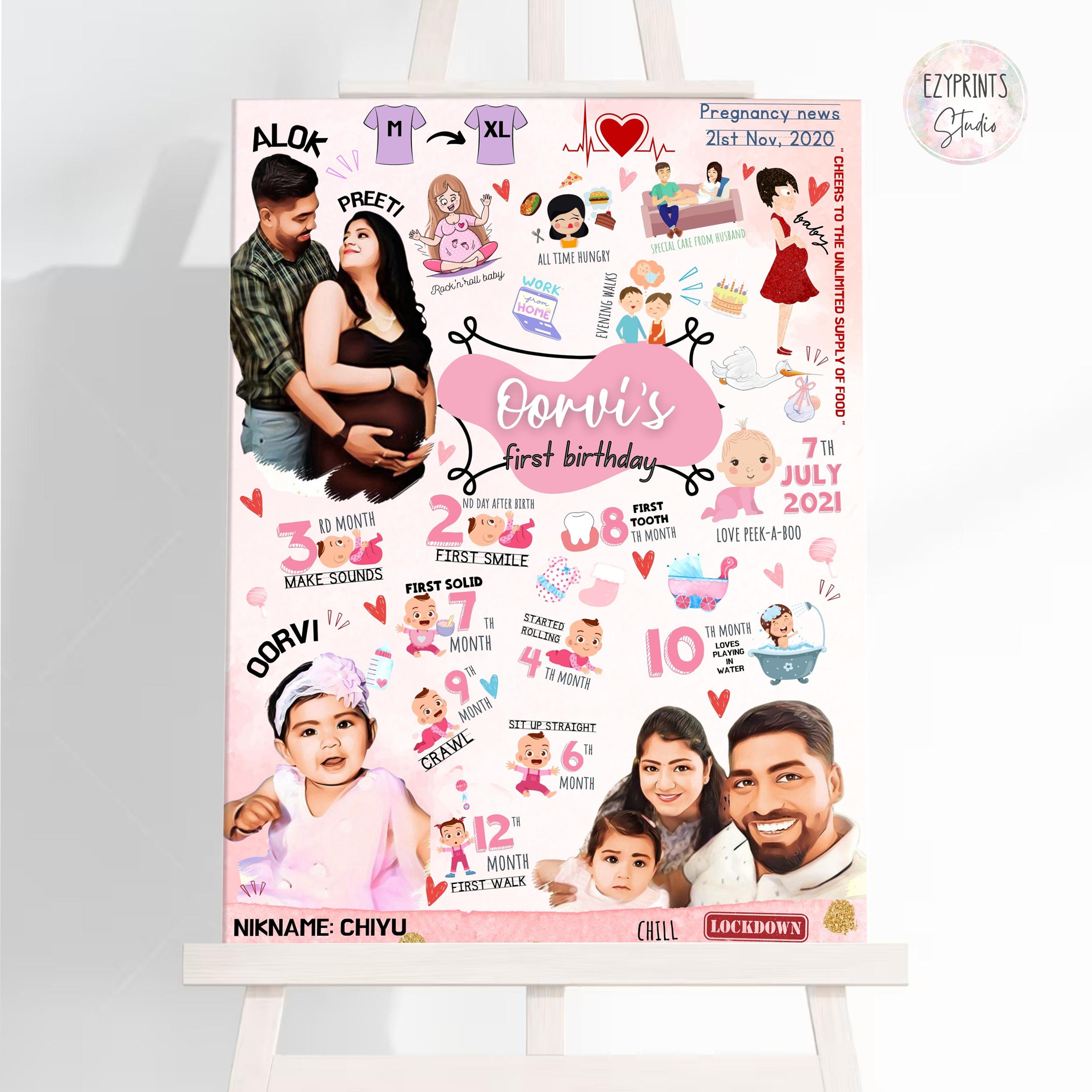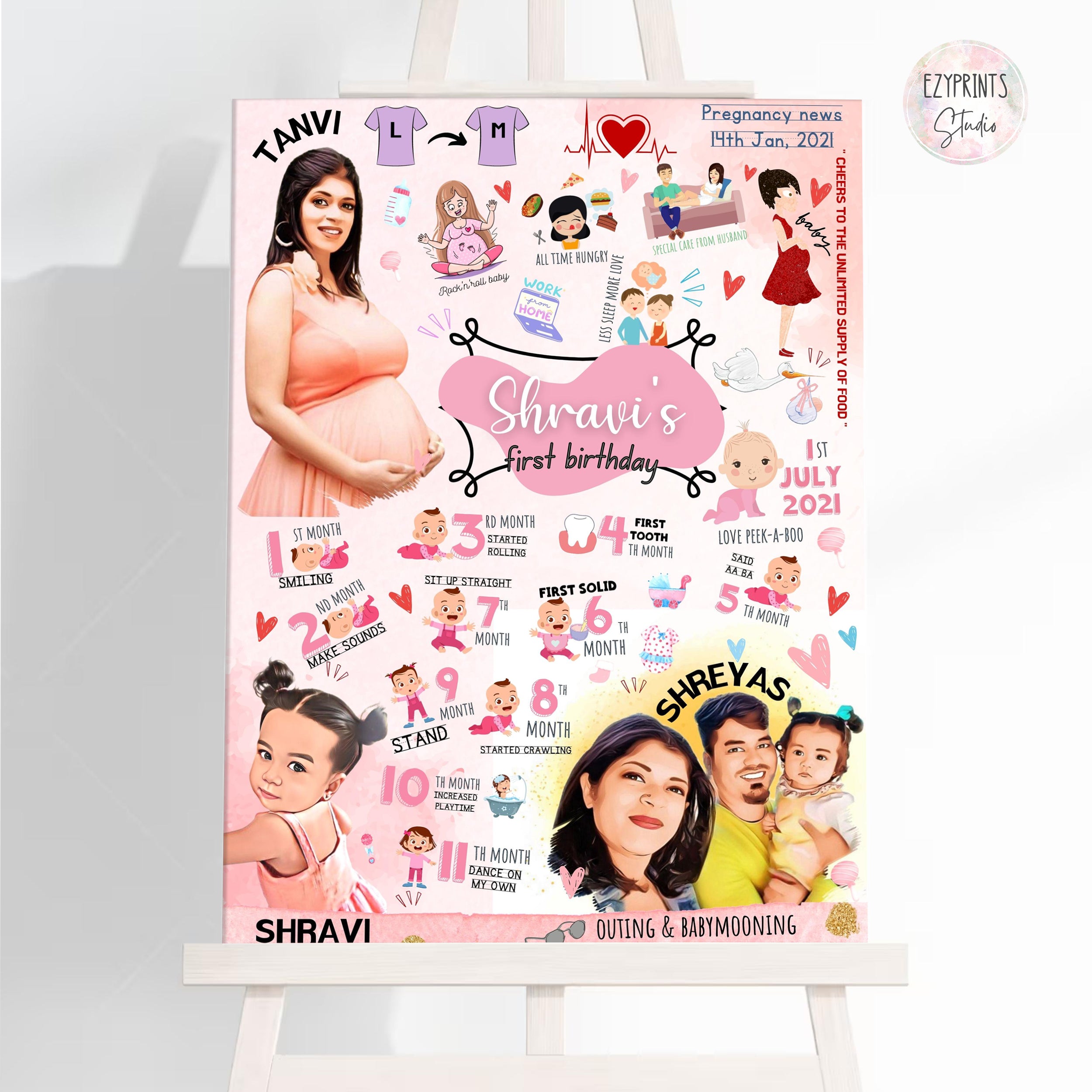 Looking for something unique and exciting for first birthday of your baby? Introducing Pregnancy Milestone Doodle Boards. Capture your journey from Pregnancy to motherhood, all in a single design. This includes your pregnancy milestones as well as your baby's one year monthly milestones.