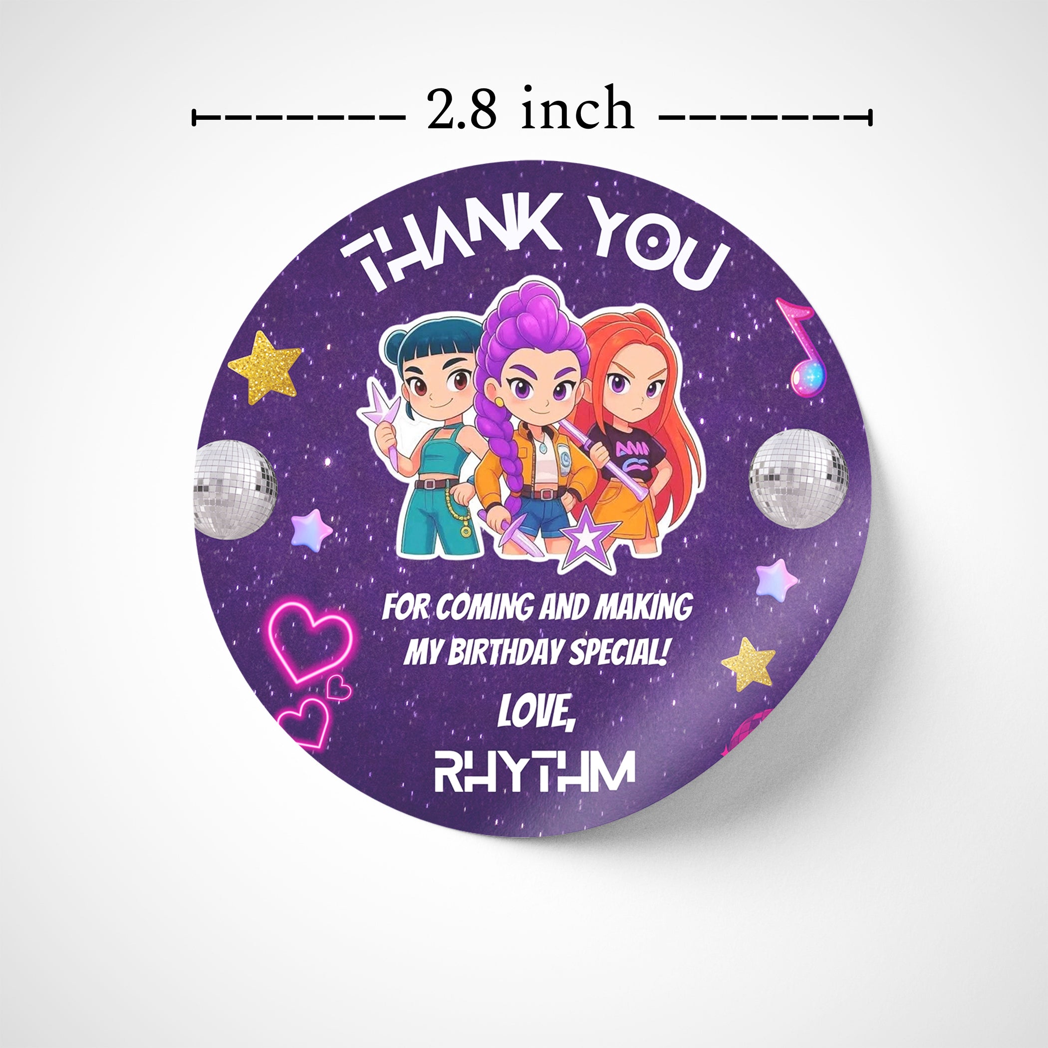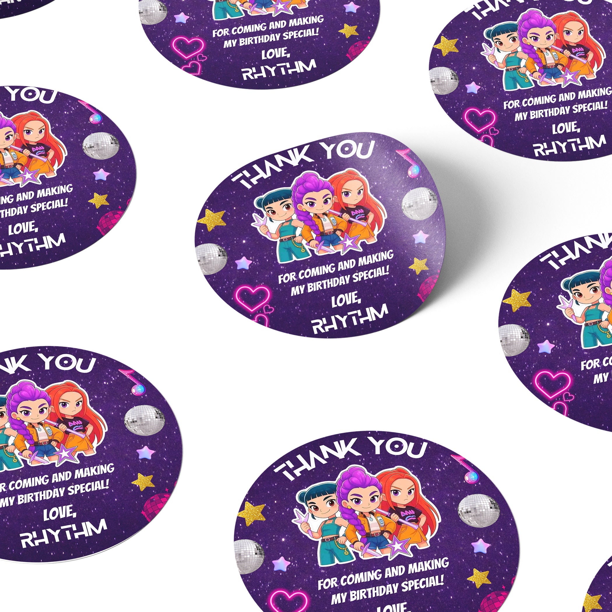 Theme based personalised 'Thank You' stickers to spread joy and gratitude at your kid's birthday party! Perfect for favours, cards, and bags. Make every guest feel appreciated!