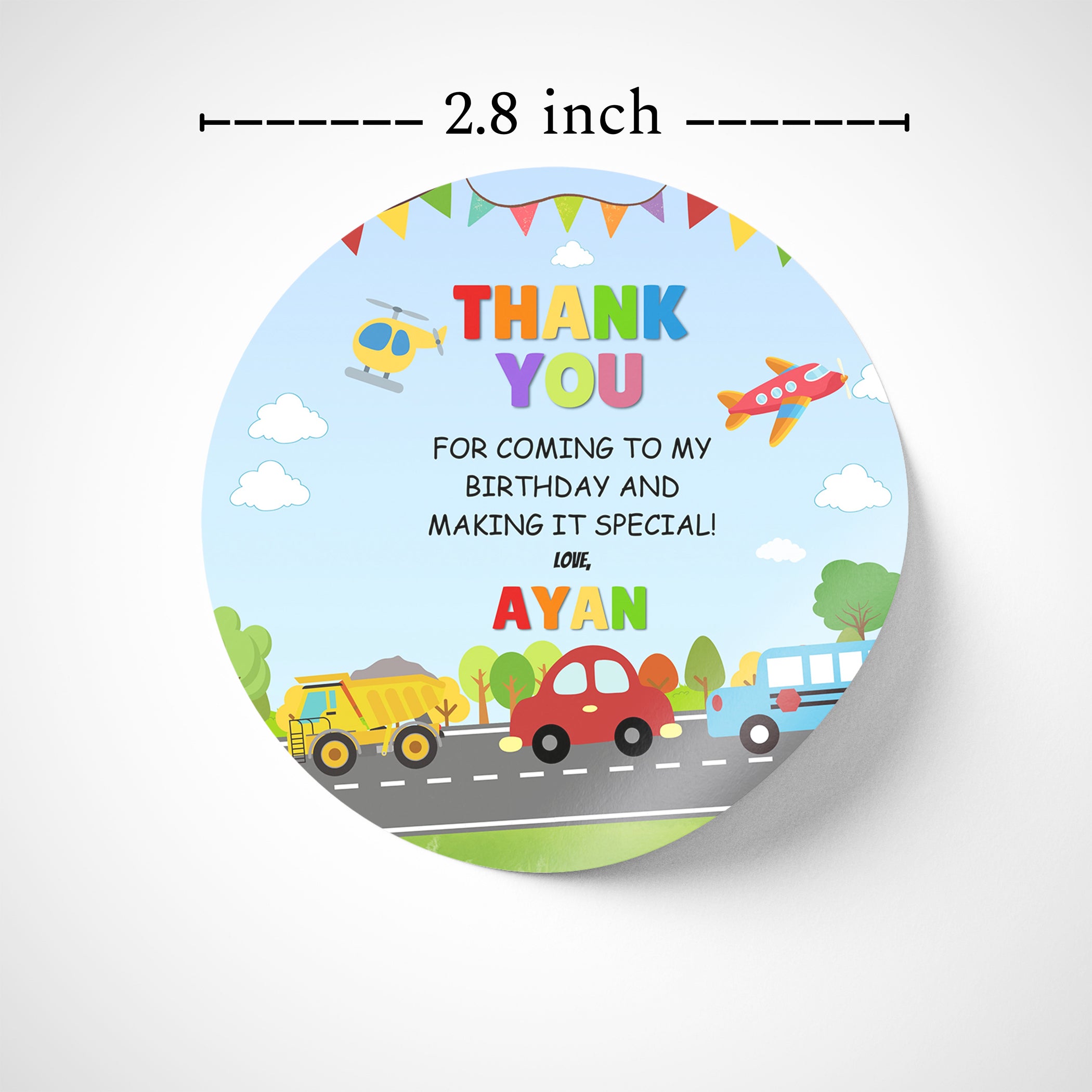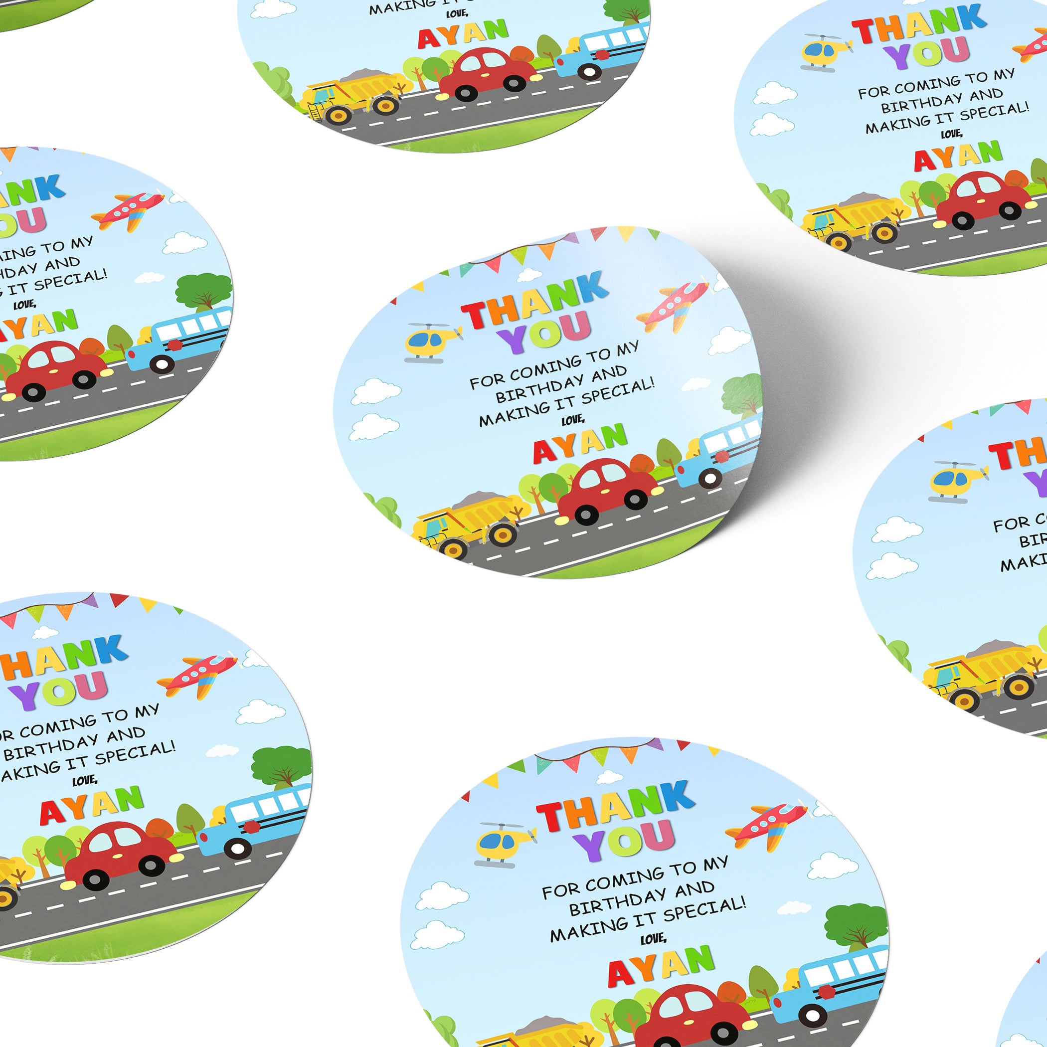 Theme based personalised 'Thank You' stickers to spread joy and gratitude at your kid's birthday party! Perfect for favours, cards, and bags. Make every guest feel appreciated!