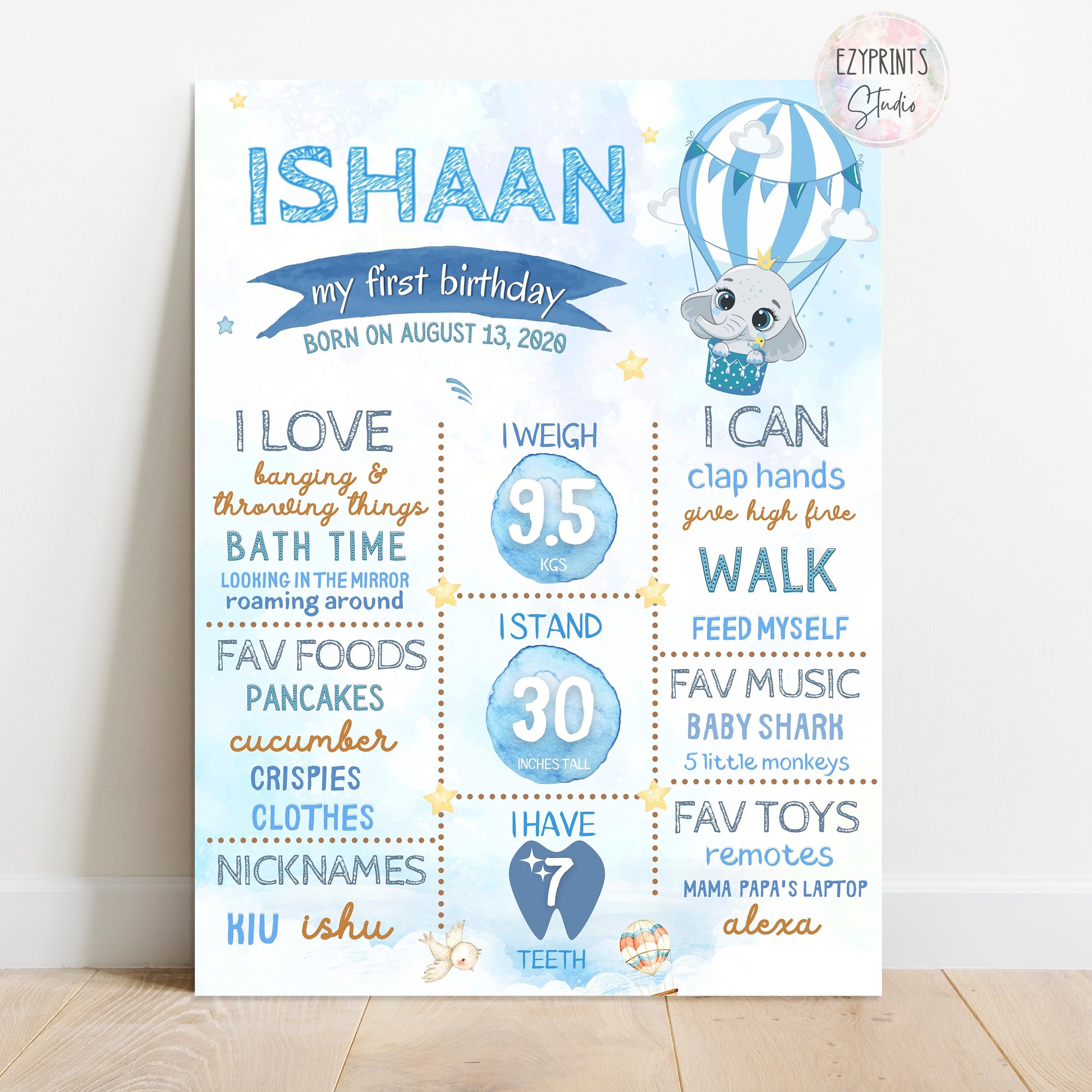 Birthday Chalkboard Poster | Elephant hot air balloon theme
