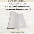 - The package includes only backdrop flex. If you don't have a backdrop stand, you can use tapes or nails to fix it on the wall. Alternatively we can provide rivets ( metal encased holes ) at corners which can be used to tie the backdrop from nails or the ceiling or tied to a curtain rod.