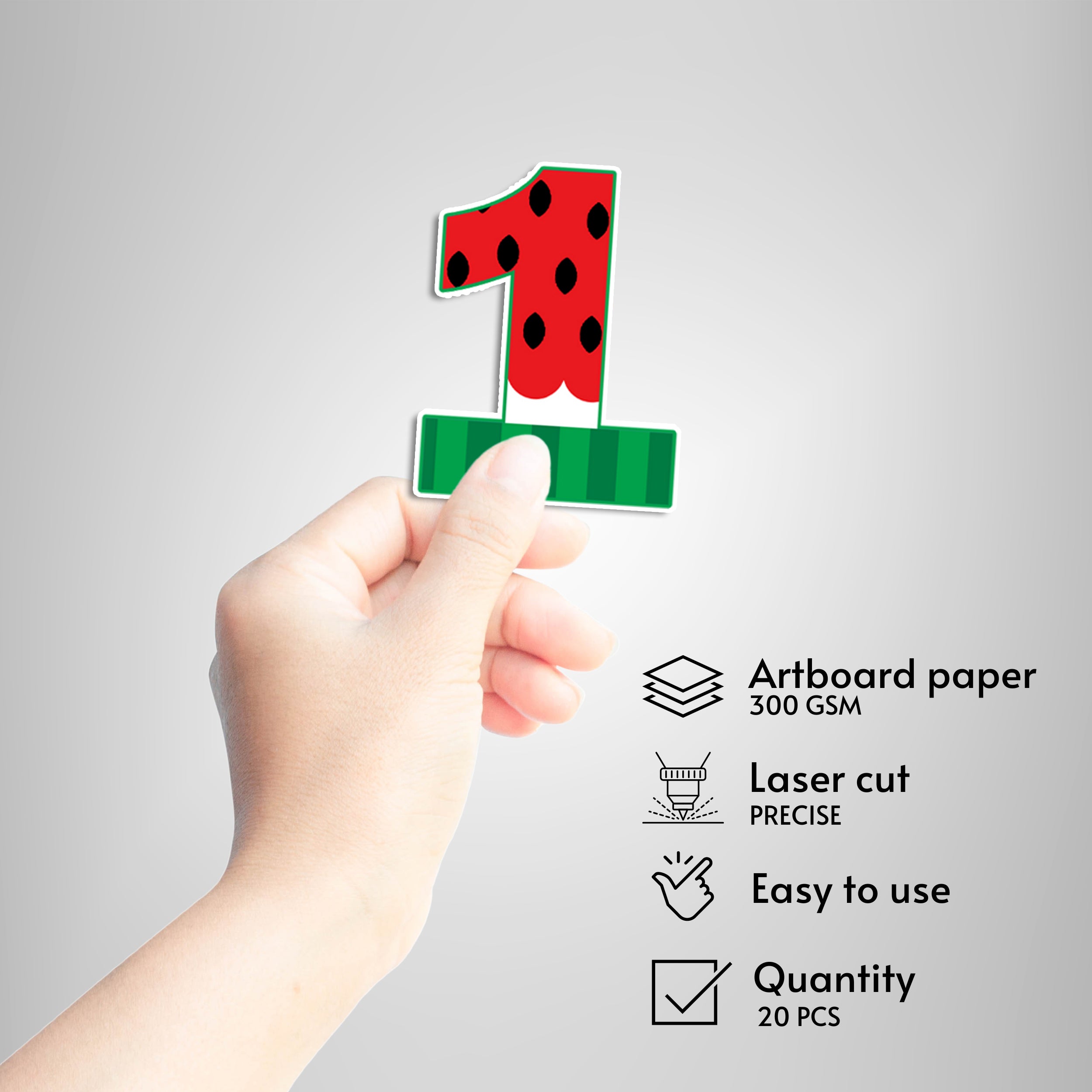 Package includes one set of 20 toppers cut in shape. No sticks are provided along with the package but only toppers are provided.