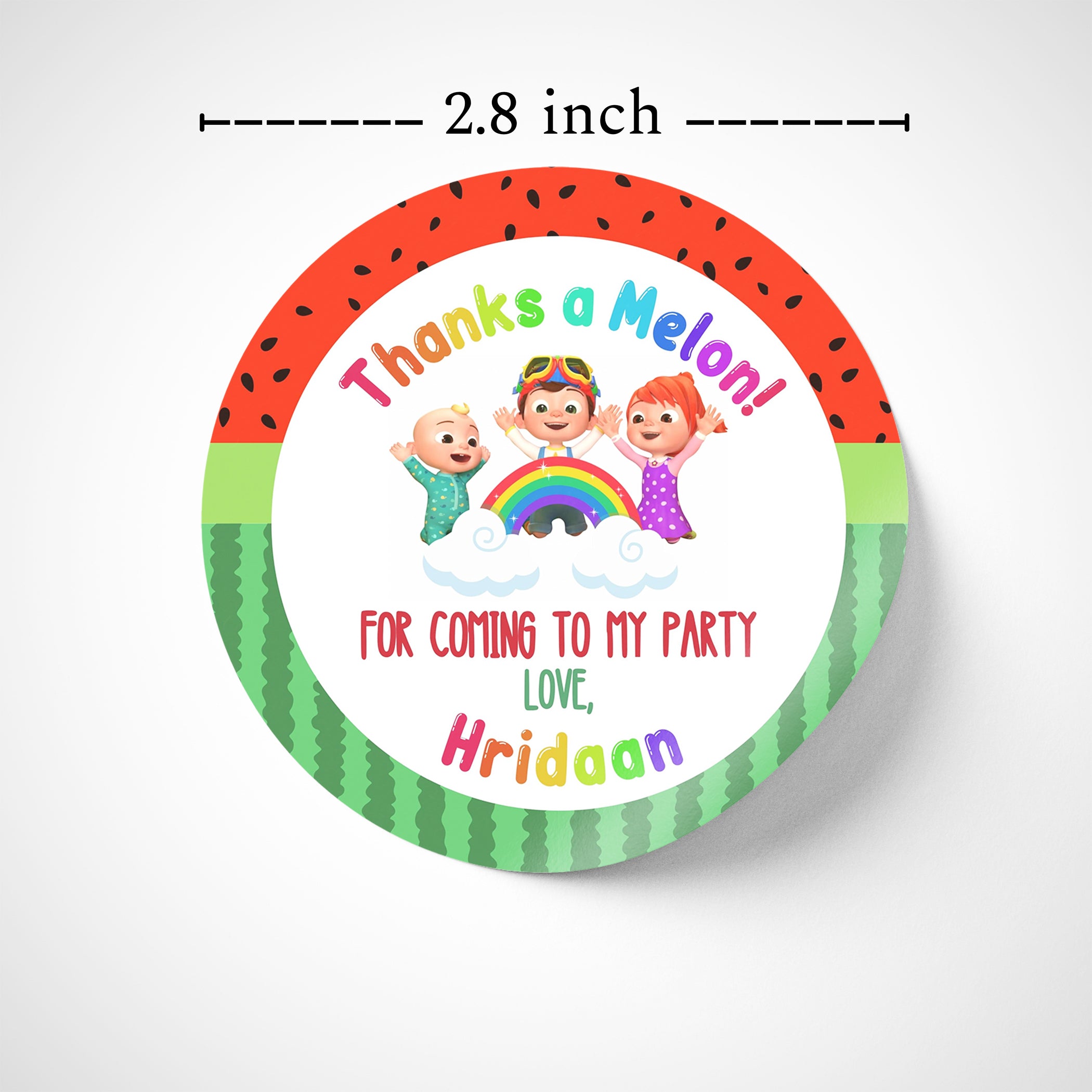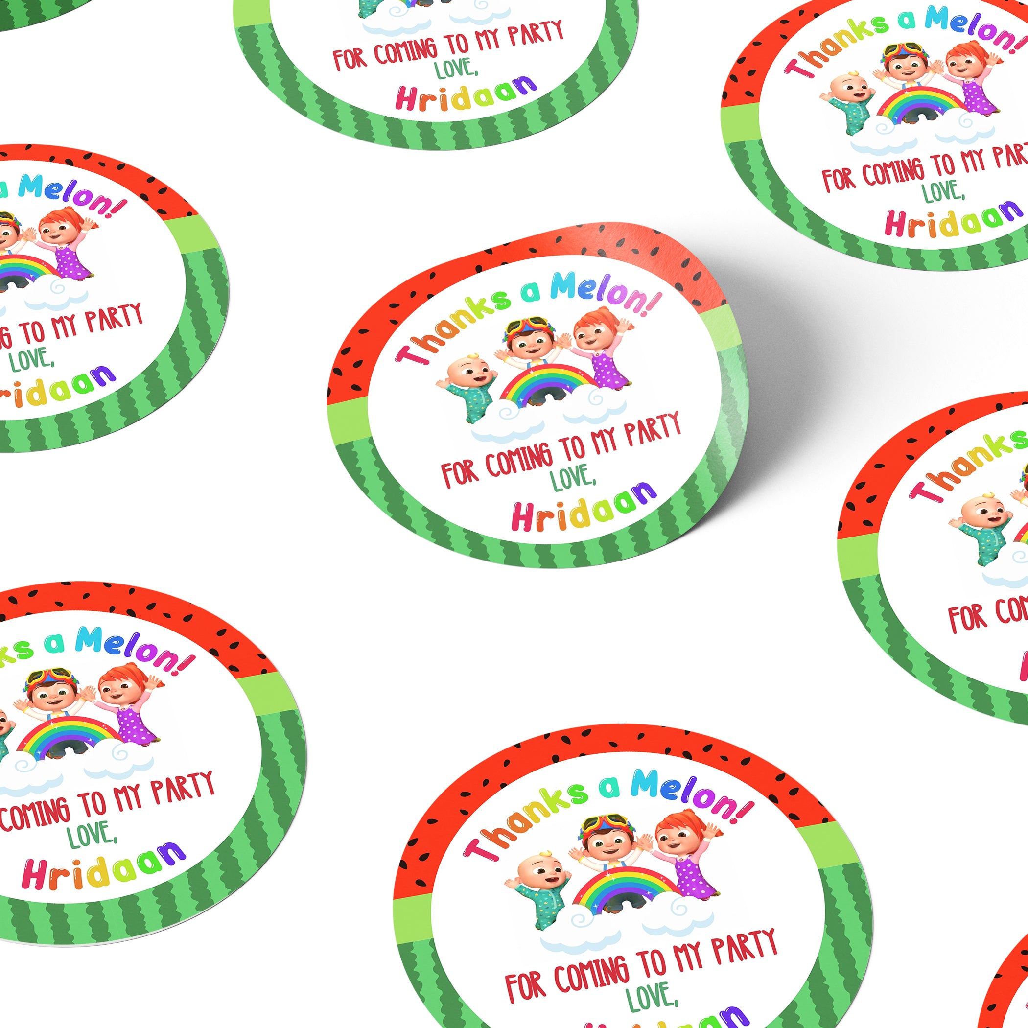 Theme based personalised 'Thank You' stickers to spread joy and gratitude at your kid's birthday party! Perfect for favours, cards, and bags. Make every guest feel appreciated!
