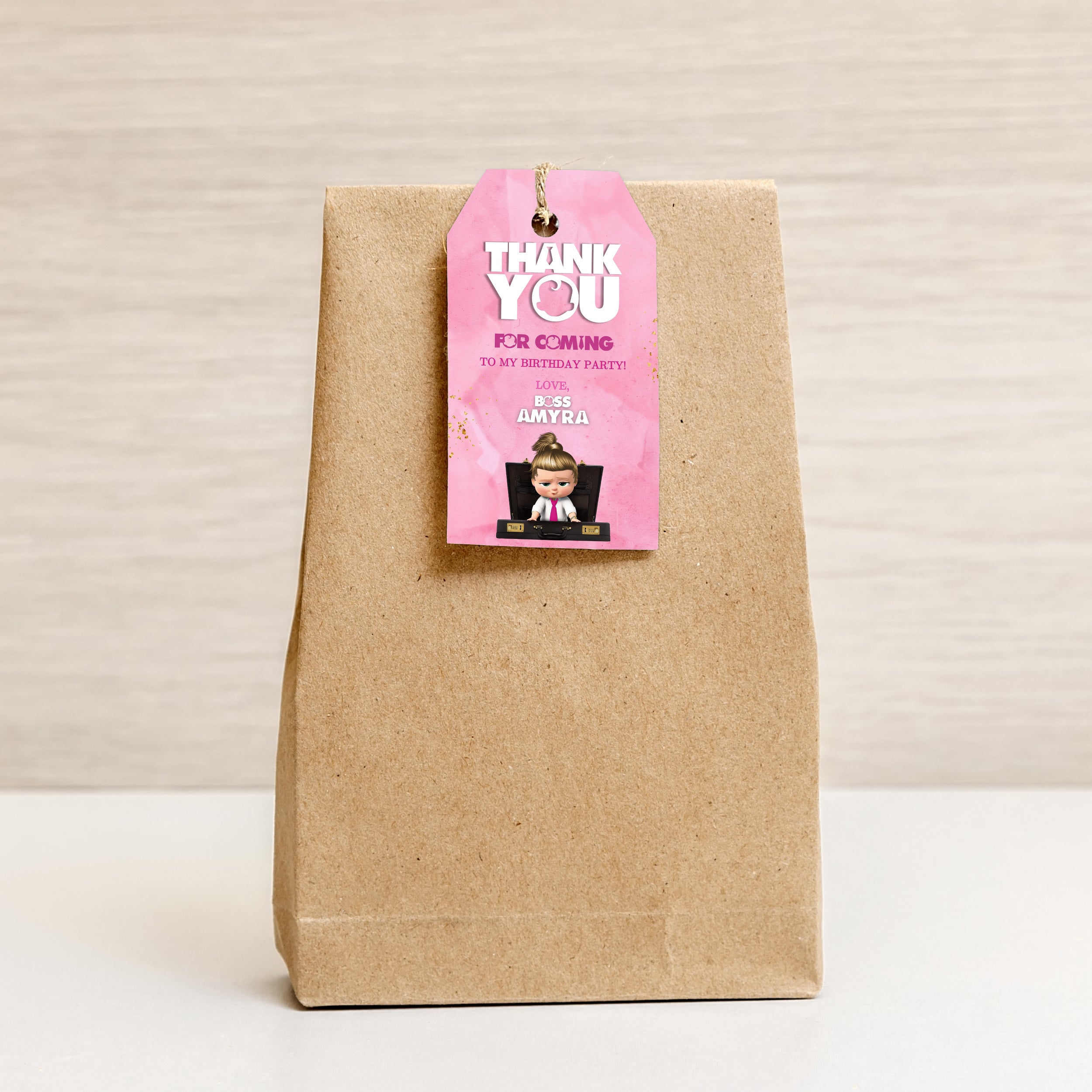 Elevate your child's birthday thank yous with our personalised, vibrant, and easy to attach tags. These tags add a delightful touch to any party favour or gift bag.